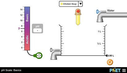 Test the pH of things like coffee, spit, and soap to determine whether each is acidic, basic, or neutral. Visualize the relative number of hydroxide ions and hydronium ions in solution. Switch between logarithmic and linear scales. Investigate whether changing the volume or diluting with water affects the pH. Or you can design your own liquid!